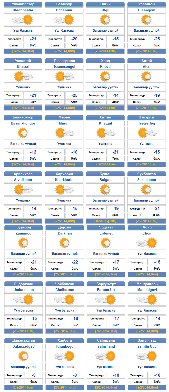 | Өнөөдрийн цаг агаарын мэдээ /2014-02-02/ | ||