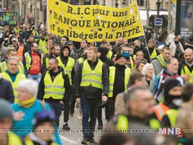 Цагдаагийн газрын мэдээгээр: өчигдөр Францын нийслэл болон мужуудад болсон гудамжны жагсаал цуглаанд 39 мянга 300 “шар хантаазтан” оролцсон нь долоо хоногийн өмнөх 46 мянга 600-аас илт бага тоо юм байна. Парис хотод жагсаал цуглаан Елисейн тал, Монтень өргөн чөлөө, Альма талбай, Сена мөрөн дээгүүрх Гренель гүүр орчимд болжээ. Жагсагчид: “засгийн эрхийг ард түмэнд, бүх нийтийн санал хураалт зохион явуул” гэсэн уриа лоозон барьж явжээ. Албан ёсны мэдээгээр, Парси хотын жагсаалд 4 мянга орчим хүн оролцож, цагдаа нар 33 хүнийг саатуулсан байна. Нант хотод болсон жагсаалд 1800-аад хүн оролцож, хүчний байгууллагынхан ус шүршигч болон нулимс асгаруулагч хий хэрэглэжээ. Лион хотод 2000 хүн оролцсон жагсаалын замд цагдаа нартай мөргөлдөөн болжээ. Тулуз хотод болсон жагсаал “бид бууж өгөхгүй” гэсэн уриан дор явагджээ. “Шар хантаазтан”-уудын олныг хамарсан эсэргүүцэл Франц улсад 2018 оны 11-р сарын 17-нд эхэлж, автомашины бензин шатахууны үнийн өсөлтийн эсрэг чиглэж байлаа. Үүнтэй холбогдуулан жагсагчид гэрэл ойлгогчтой шар өнгийн хантааз өмссөн юм. Гэтэл одоо “шар хантаазтан”-ууд шаардлагаа өргөтгөж, нийгэм-эдийн засагтай холбоотой шаардлага тавихаас гадна улс төрийн шаардлагууд хүртэл тавих болжээ.