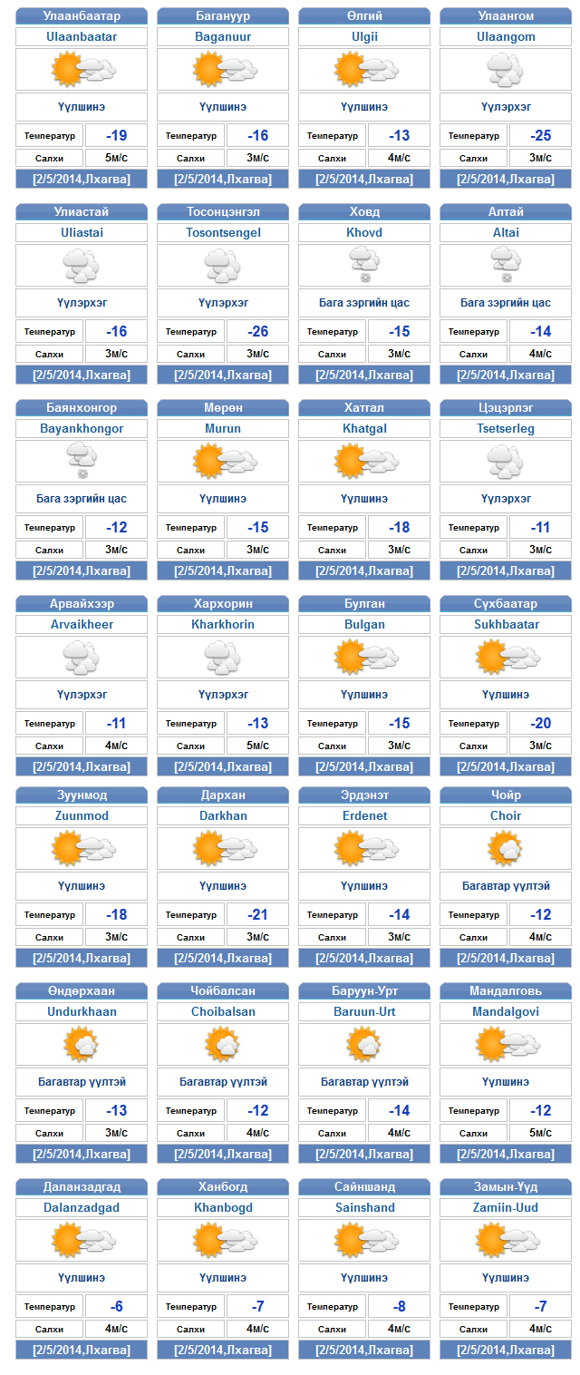 | Өнөөдрийн цаг агаарын мэдээ /2014.02.06/ | ||