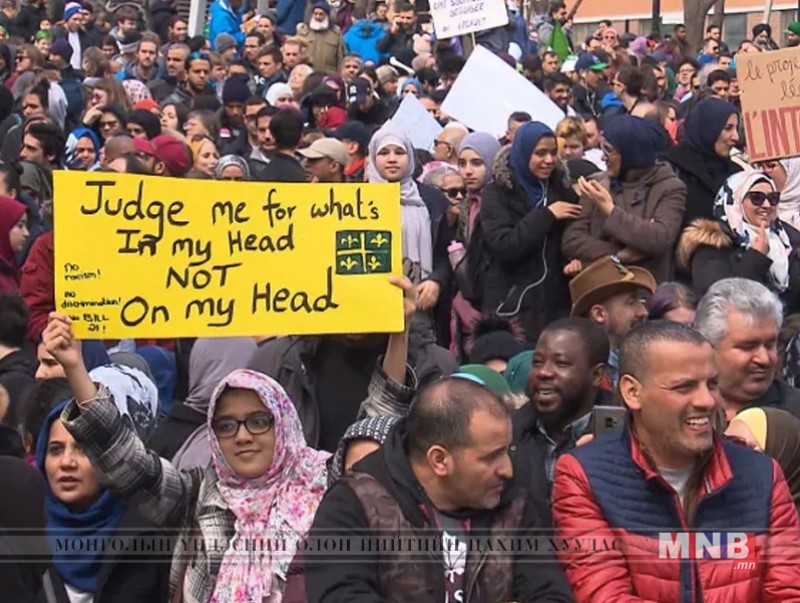 Канадын Монреал хотод шашны хувцасны хоригийн тухай хуулийг эсэргүүцсэн жагсаал боллоо. Квебек мужийн засаг захиргаанаас төрийн албан хаагчдыг ажлын цагаараа шашны бүхий л шинжийг агуулсан хувцас өмсөхийг хориглосон хууль батлах гэж байгааг эсэргүүцэн хэдэн мянган иргэн жагсаал зохион байгуулжээ.