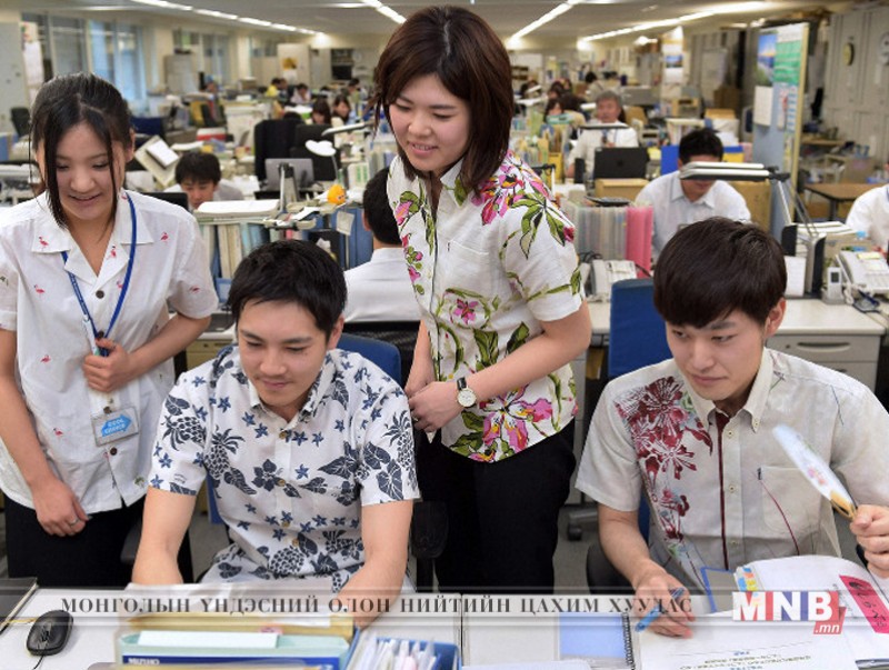 Японы Байгаль орчны яамны ажилтнууд энэ аянд үлгэр жишээ үзүүлж зангиагүй ирсэн байна. Зарим нь Токиод хэдий сэрүүн байгаа ч богино ханцуйтай цамц, ургамлын зурагтай окинава маягийн цамц өмсчээ.