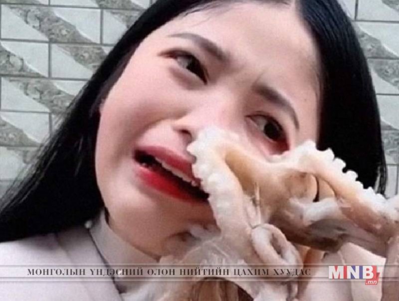 “Seaside girl little seven" нэрээр Хятадын чөлөөт бичлэгийн орон зай болох “Куайшоу” платформд шууд бичлэгээ нийтэлдэг хятад бүсгүйг ээлжит бичлэгээ цацаж байх үеэр түүний идэх гэж байсан наймаалж бүсгүй рүү дайрчээ. Түүнчлэн өөрийгөө хамгаалах гэсэн наймаалж бүсгүйн хацарт тэмтрүүлээ шигтгэсэн байна.