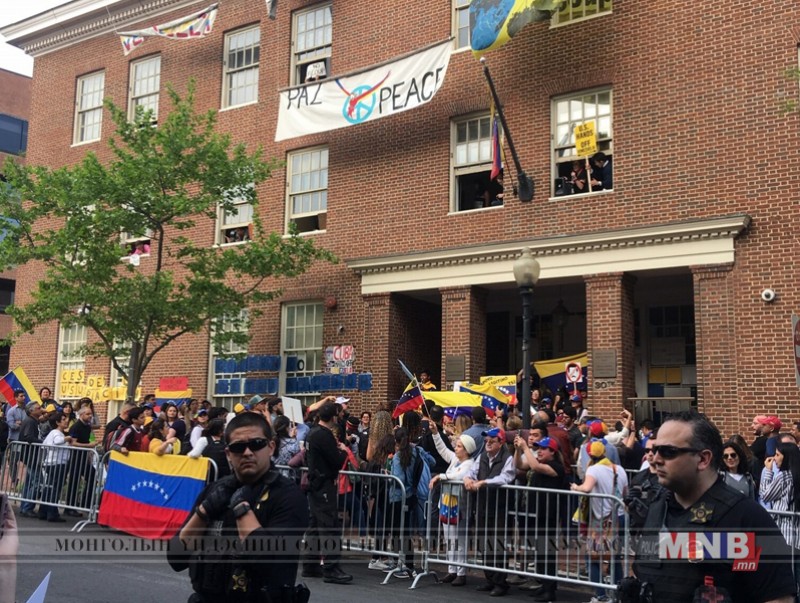 АНУ-д жагсагчид Венесуэлийн Ерөнхийлөгч Николас Мадурог дэмжигчдийг хөөж гаргах зорилготойгоор АНУ дахь Венесуэлийн Элчин сайдын яамыг бүсэлжээ.