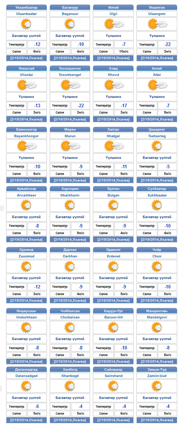 | Өнөөдрийн цаг агаарын мэдээ /2014.02.19/ | ||