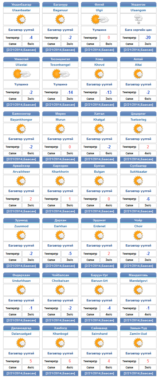 | Өнөөдрийн цаг агаарын мэдээ /2014.02.21/ | ||