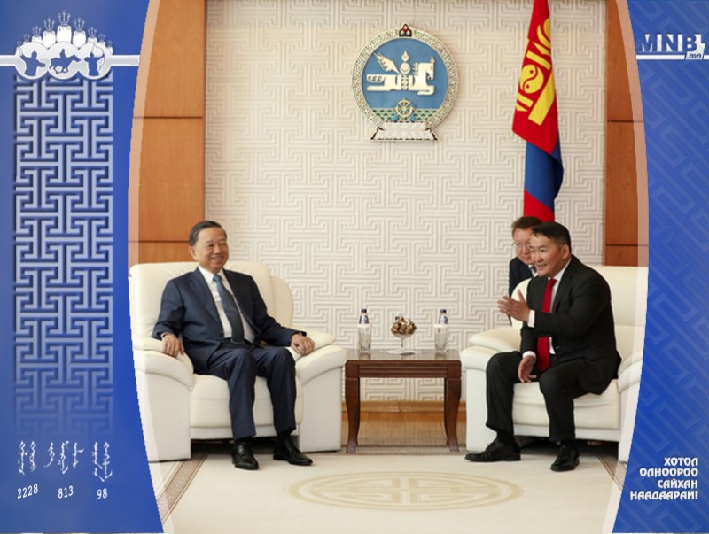 Хууль зүй, дотоод хэргийн сайд Ц.Нямдорж, Үндэсний аюулгүй байдлын зөвлөлийн Нарийн бичгийн дарга А.Гансүх нарын урилгаар энэ сарын 9-12-ны өдрүүдэд Монгол Улсад айлчилж байгаа Бүгд Найрамдах Социалист Вьетнам улсын Нийгмийн аюулгүй байдлын сайд То Ламыг өнөөдөр Монгол Улсын Ерөнхийлөгч Х.Баттулга хүлээн авч уулзлаа.