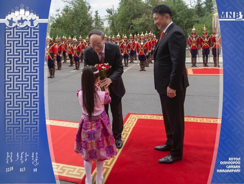 БНХАУ-ын Дэд дарга Ван Чишань Монгол Улсад хийж буй айлчлалынхаа үеэр Монгол Улсын Ерөнхийлөгч Х.Баттулгад бараалхаж, УИХ-ын дарга Г.Занданшатартай уулзана. Тэрээр дагалдан яваа төлөөлөгчдийн хамт Үндэсний их баяр наадмын нээлтийн ажиллагаа, Үндэсний Түүхийн музей үзэж сонирхох юм.