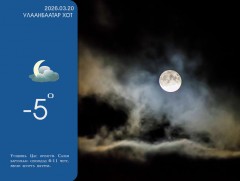 ЦАГ АГААР: Улаанбаатарт шөнөдөө 5 хэм хүйтэн