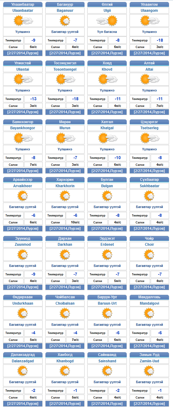 | Өнөөдрийн цаг агаарын мэдээ /2014.02.27/ | ||