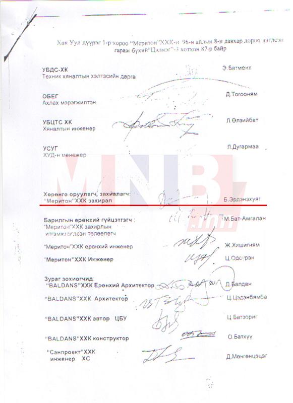 -Та улсын комисс тухайн байрыг хүлээж авахад Хөрөнгө оруулагч, захиалагч “Меритон” ХХК-ийн захирал гэсэн албан тушаалтайгаар гарын үсгээ зурсан байна билээ?