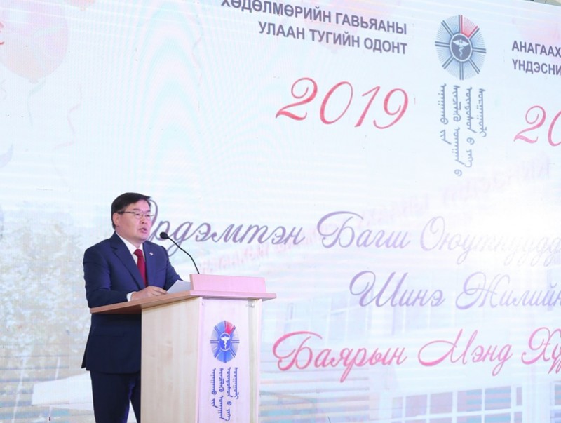 УИХ-ын дарга Г.Занданшатар тус сургуульд шинээр элсэн орж буй оюутнуудад тусгайлан баяр хүргээд, “Эмчийн мэргэжил манай улсад хамгийн нэр хүндтэй мэргэжил хэвээр байна. Манай үе үеийн эмч нар хүн ардынхаа эрүүл мэнлийг сахин хамгаалахад үнэтэй хувь нэмэр оруулсаар ирсэн. Та бүхний ажлыг тойруугаар үнэлэх нэг үзүүлэлт бол манай иргэдийн дундаж наслалт юм. 1992 онд 62.8 байсан дундаж наслалт 2018 оны байдлаар 70.2 болжээ. Гэсэн хэдий ч энэхүү үзүүлэлтээрээ бид дэлхийд 122-р байрт бичигдэж байна. Энэ бол ирээдүйн эмнэлгийн мэргэжилтэн та бүхний өмнө асар их хариуцлага, итгэл хүлээлт байгааг илэрхийлж байгаа юм. Үүнийг зөвхөн өндөр мэдлэг, мэргэжлийн ур чадвараар шийдэж чадна” гэлээ.