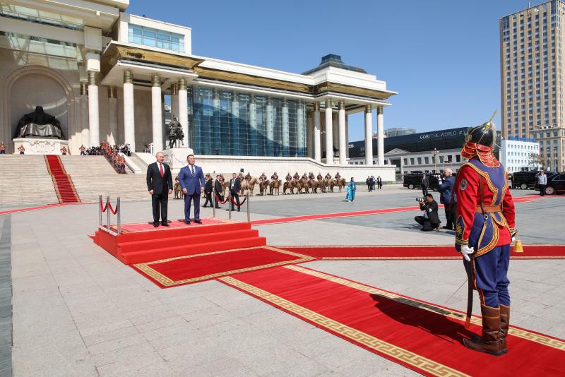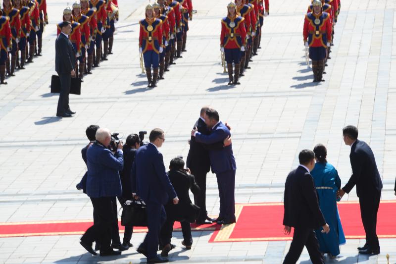 Айлчлалын хүрээнд хоёр улсын Ерөнхийлөгч нар ганцаарчилсан уулзалт хийж, баримт бичигт гарын үсэг зурахаар төлөвлөсний дагуу өнөөдөр ОХУ-ын Ерөнхийлөгч В.В.Путин Төрийн ордонд хүрэлцэн ирлээ. Түүнийг Монгол Улсын Ерөнхийлөгч Х.Баттулга Сүхбаатарын талбайд албан ёсоор угтан мэндчилэв.
