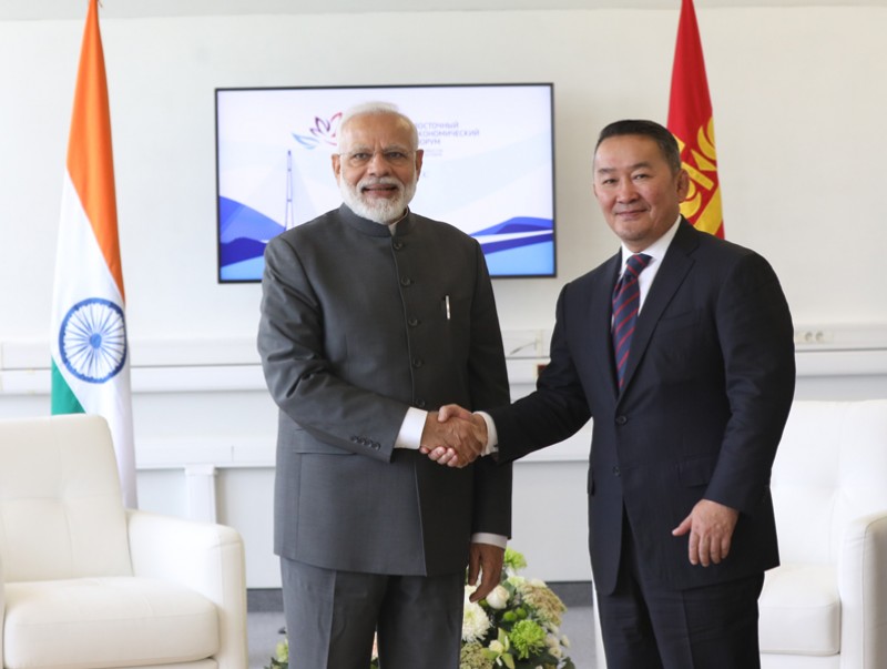 Монгол Улсын Ерөнхийлөгч Х.Баттулга ОХУ-ын Владивосток хотноо Бүгд Найрамдах Энэтхэг улс /БНЭУ/-ын Ерөнхий сайд Нарендра Модитой уулзлаа. Уулзалтын эхэнд Монгол Улсын Ерөнхийлөгч Х.Баттулга Дорнын эдийн засгийн чуулганд анх удаа оролцож буй Ерөнхий сайд Н.Модид амжилт хүслээ.