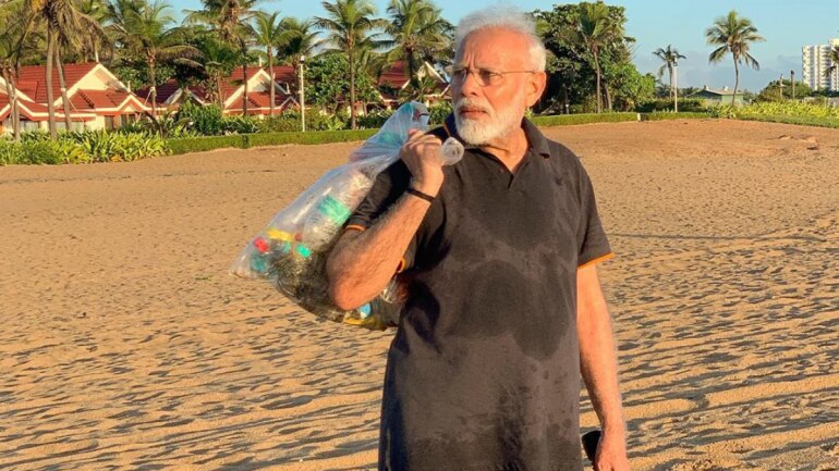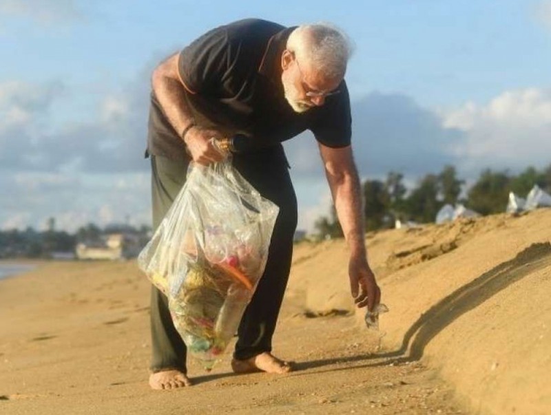 Нарендра Модегийн далайн эргээр алхангаа хог түүж байгаа бичлэг бямба гарагт "твиттер"-т тавигдсан байна. Энэ бичлэгт Ерөнхий сайд Нарендра Моде Махабалипурам далайн эрэгт хаягдсан ундааны сав, гялгар уутны хогийг түүж, цуглуулсан хогоо зочид буудлын ажилтад хүлээлгэн өгч байгааг харуулжээ.