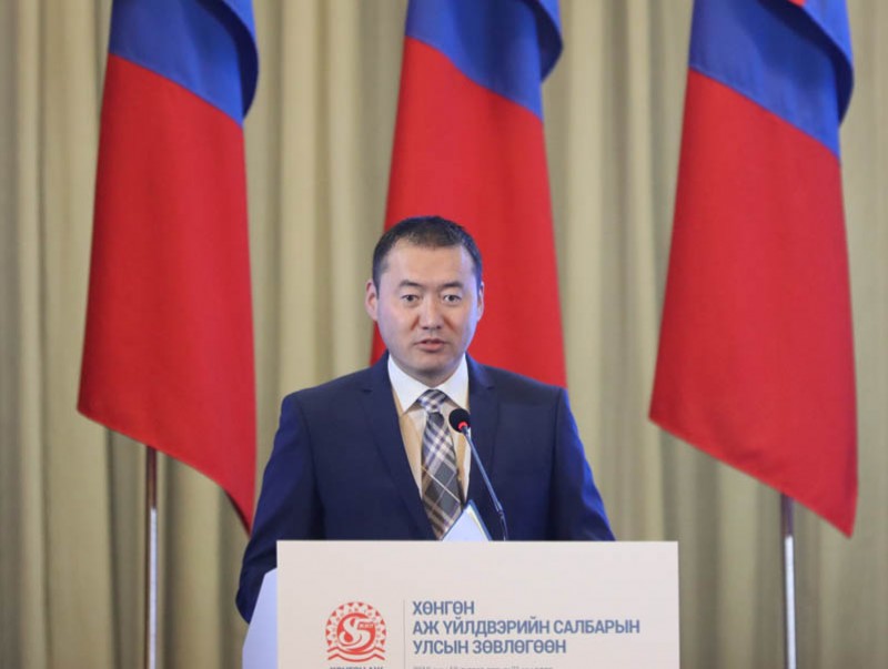 Монгол Улсын Ерөнхийлөгчийн илгээлтийг Хүнс, хөдөө аж ахуй, хөнгөн үйлдвэрийн сайд Ч.Улаанд гардуулж өглөө.