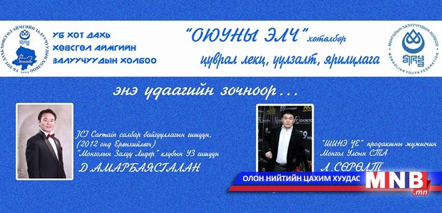 Монголын залуучуудын холбооны дэргэдэх Улаанбаатар хот дахь Хөвсгөл аймгийн Залуучуудын холбоо 2014 оны ажлын төлөвлөгөөндөө залуучуудын хөгжлийг дэмжих, оролцоог нэмэгдүүлэх хамтдаа хөгжих зорилгоор “Оюуны элч” хөтөлбөрийг хэрэгжүүлж эхэлсэн байна. Энэ хүрээнд цуврал лекц, уулзалт, сургалт, мөн ерөнхий боловсролын сургуулийн дотуур байрны сурагчдад номтой илүү ойр нөхөрлөх боломжийг олгож бүх сумын дотуур байранд 1000 ба түүнээс дээш номтой өрөөг тохижуулж өгөхөөр ажиллаж байгаа ажээ. Лекц, ярилцлага, уулзалтыг Улаанбаатар хотод сар бүрийн нэг, дөрөв дэх долоо хоногийн лхагва гараг буюу гурав дахь өдөр Монголын залуучуудын холбооны “Залуус танхимд”-д зохион байгуулах юм байна. Улаанбаатар хот дахь “Оюуны элч”-ийн анхны зочноор JCI Charmain салбар байгууллагын гишүүн /2012 онд Ерөнхийлөгч/, “Монголын залуу лидер” клубын Удирдах зөвлөлийн гишүүн Д.Амарбаясгалан, “Шинэ үе” продакшны жүжигчин Монгол Улсын СТА Л.Сөрөлт нар оролцох бөгөөд залуучуудыг “Оюуны элч”-д оролцож, хамтдаа ярилцаж, хөгжихийг уриалж байна.