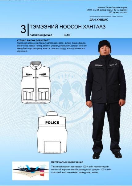 Цагдаагийн ерөнхий газрын Санхүү аж ахуйн албанаас Засгийн газрын 2017 оны тавдугаар сарын 30-ны өдрийн 155 дугаар тогтоолоор батлагдсан “Цагдаагийн алба хаагчийн дүрэмт хувцасны загвар, түүний эдэлгээний хугацаа, цагдаагийн алба хаагчид дүрэмт хувцасны мөнгөн хангамж олгох журам батлах тухай” журамд заагдсан “Тэмээний ноосон хантааз”-ыг энэ онд үндэсний үйлдвэрлэгч “Кашмер холдинг” ХХК-ны загварыг шалгаруулан шинээр хийлгэсэн юм.