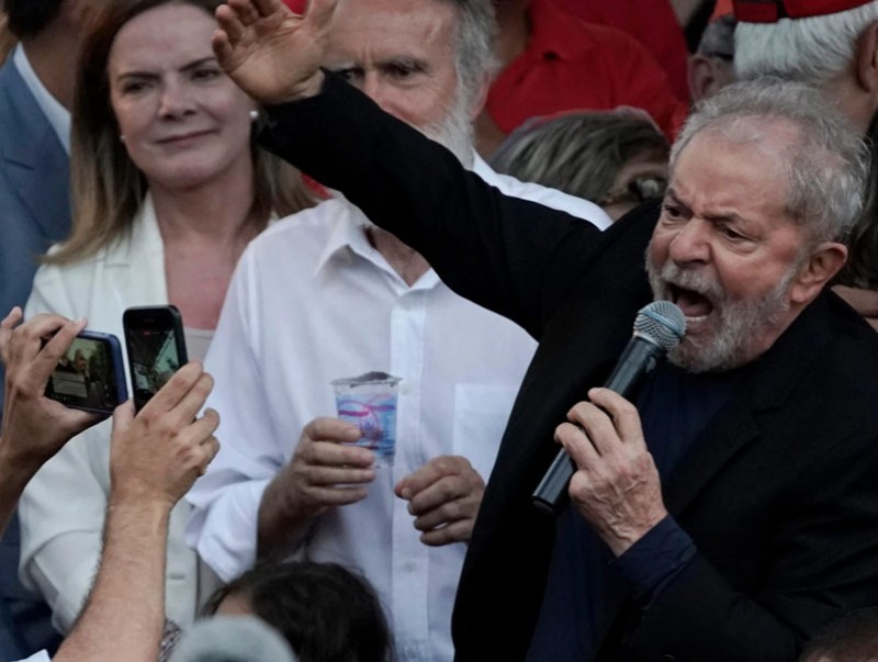 Сан Паулу хотын ойролцоо болсон үйлдвэрчний эвлэлийн уулзалтын үеэр экс ерөнхийлөгч үг хэлжээ. Бразилын зүүний хүчний тэргүүн Лула авлигатай холбоотой хэрэгт холбогдож, 18 сарын турш шоронд хоригдсоны дараа суллагдаад байгаа юм.