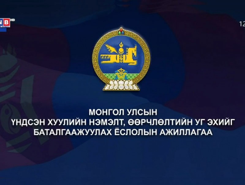 | Монгол Улсын Үндсэн хуулийн нэмэлт өөрчлөлтийн уг эхийг баталгаажуулах ёслолын ажиллагаа /Шууд/ | ||