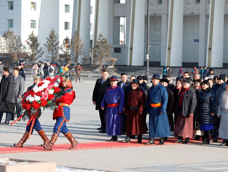 Монгол Улс Анхдугаар Үндсэн хуулиа баталж, Бүгд Найрамдах Улсаа зарлан тунхагласны 95 жилийн ойг тохиолдуулан Монгол Улсын Ерөнхийлөгч Х.Баттулга, Улсын Их Хурлын дарга Г.Занданшатар, Ерөнхий сайд У.Хүрэлсүх, УИХ, Засгийн газрын гишүүд, УИХ-ын Тамгын газрын ажилтнууд өнөөдөр (2019.11.26) Их жанжин Д.Сүхбаатарын хөшөөнд цэцэг өргөж, Их Эзэн Чингис хааны хөшөөнд хүндэтгэл үзүүллээ.