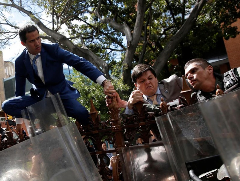 Төрийн ордондоо орох боломжгүй болоод байсан Венесуэлийн сөрөг хүчний удирдагч Хуан Гуайдо намын нөхдийнхөө хамтаар парламентийн ордны гадаах хатуу хамгаалалтыг сэтлэн оржээ. Тэрээр Үндэсний ассамблейд ийн нэвтэрснийхээ дараа парламентийн даргын суудалд суун, сөрөг хүчний улс төрчидтэйгээ хамт Венесуэлийн төрийн дууллыг дуулж, улмаар спийкерийн тангараг өргөсөн байна. Гуайдо-г ингэж тангараг өргөх үеэр төрийн ордонд нь цахилгаан тасалсан байжээ.