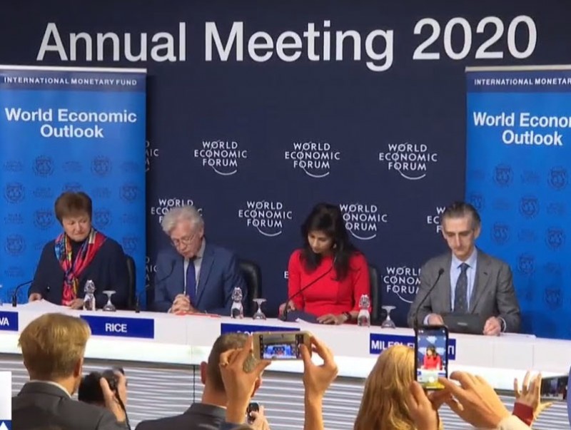 Энэ тухай олон улсын валютын сангийн тэргүүн Кристалина Георгиева Давос дахь олон улсын эдийн засгийн чуулга уулзалт дээр хэлсэн үгэндээ онцлоод байна. Мөн тэрээр энэ онд АНУ-ын дотоодын нийт бүтээгдэхүүний хэмжээ энэ онд 2 хувьд хүрэхээр байгаа нь өнгөрсөн оныхоос 0,3 хувиар буурсан үзүүлэлт гэдгийг тэмдэглэн хэлсэн байна. Түүнчлэн еврогийн бүсийн орнуудын ДНБ-ны өсөлт 0,1 хувиар өсч 1,3 хувьтай гарна гэж таамаглаж байгааг мэдээлсэн юм. Мөн олон улсын валютын сангийн шинжээчид ойрын жилүүдэд уур амьсгалын өөрчлөлт дэлхийн эдийн засгийн өсөлтийн гол эрсдэл болохыг сануулж байгааг тэрээр анхаарууллаа.