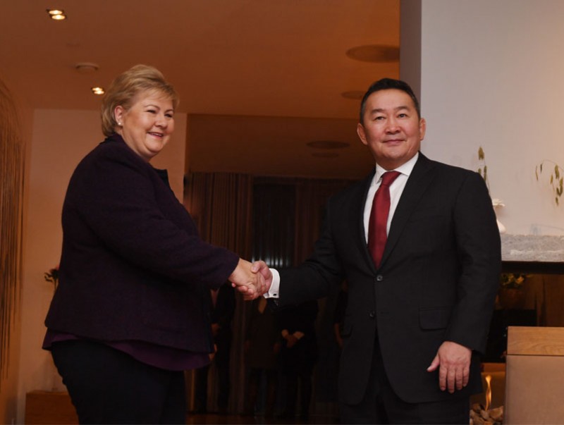 Хатагтай Эрна Солберг Монгол Улсын Ерөнхийлөгчийг Норвег Улсад тавтай морилохыг хүсээд хоёр улс халуун дотно харилцаатай гэдэг нь энэ удаагийн айлчлалаар илэрч байгаа бөгөөд цаашид харилцаагаа илүү өргөжүүлэх хүсэлтэй хэмээн уулзалтын эхэнд тодотголоо.