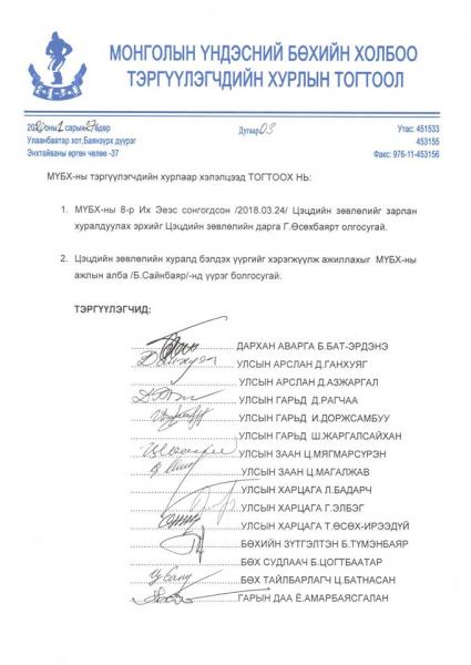 | МҮБХ-ны Цэцдийн зөвлөлийн хурал ирэх гуравдугаар сарын 2-нд болно | ||