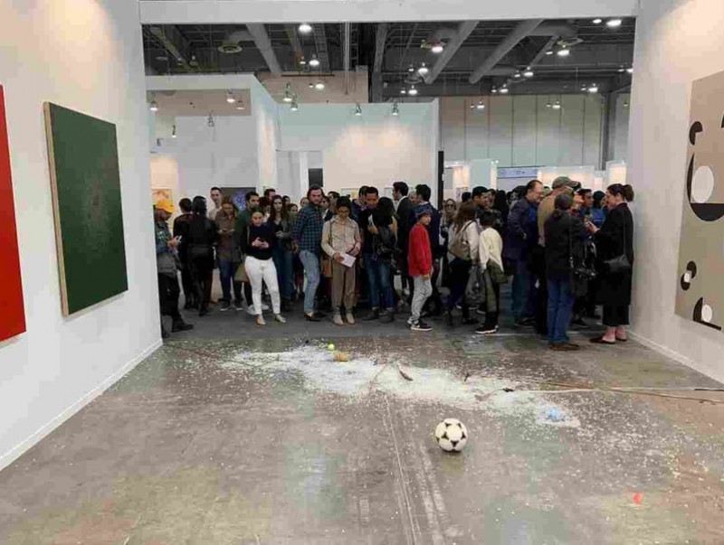 Урлагийн шүүмжлэгч Авелина Лестер гэх Мехико хотын OMR гэх галерейд дэлгэгдсэн бүтээлүүдийг сонирхож байжээ. Энэ үеэр тэрээр өөрт нь таалагдаагүй нэгэн урлагийн бүтээлийн дэргэд ууж дууссаны ундааны лаазаа очиж тавьж, эсэргүүцэл илэрхийлэхийг оролджээ. Харамсалтай нь түүнийг ундааны лаазаа тавих үед нөгөөх урлагийн бүтээл гэнэт нурж сүйдсэн байгаа юм. Мексикийн уран бүтээлч Габрейл Рикогийн том шилэн самбарт хөл бөмбөг, өд зэрэг эд зүйлсийг тогтоосон тус бүтээл 20000 ам.долларын үнэтэй байжээ.