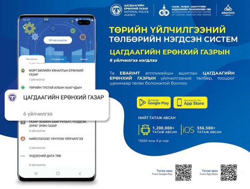 - 2020 оны дөрөвдүгээр сарын 08-ны өдрөөс эхлэн Цагдаагийн Ерөнхий Газрын 5-н төрлийн үйлчилгээ болон 1 төрлийн лавлагааны төлбөрийг ebarimt аппликейшн ашиглан төлөх боломжтой болсон. Үүнд: