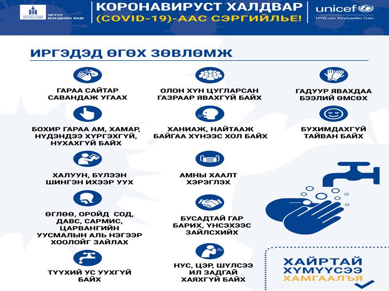 "COVID-19" халдвараас урьдчилан сэргийлэх зөвлөмжийг хүргэж байна.