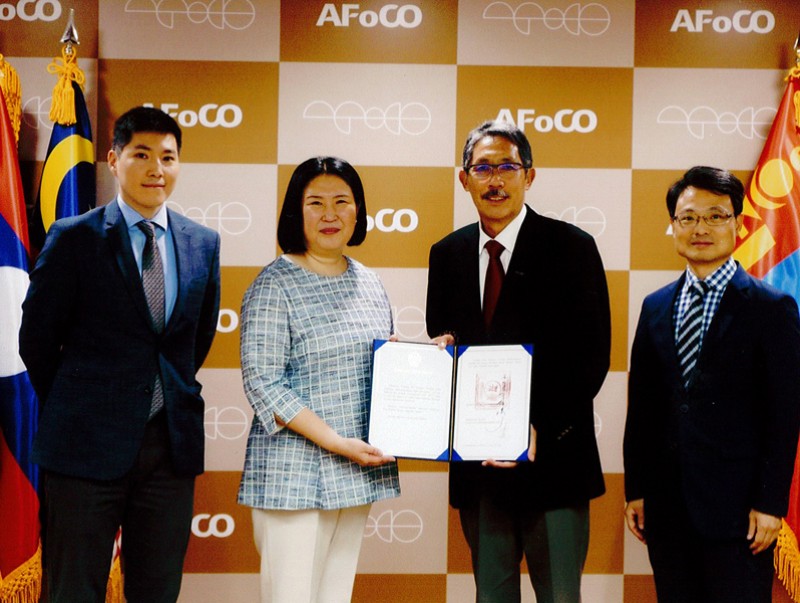 “Азийн ойн хамтын ажиллагааны байгууллагыг үүсгэн байгуулах тухай хэлэлцээр” (The Agreement on the Establishment of the Asian Forest Cooperation Organization) – ийг 2019 оны 11 дүгээр сарын 21-ний өдөр Монгол Улсын Их Хурал соёрхон баталсан тухай Батламж жуух бичгийг Монгол Улсаас Бүгд Найрамдах Солонгос Улсад суугаа Элчин сайдын яамны түр хамаарагч Н.Эрдэнэтуяа тус олон улсын байгууллагын Гүйцэтгэх захирал ноён Chencho NORBU-д Сөүл хотноо 2020 оны 7 дугаар сарын 1-ний өдөр албан ёсоор гардуулав.