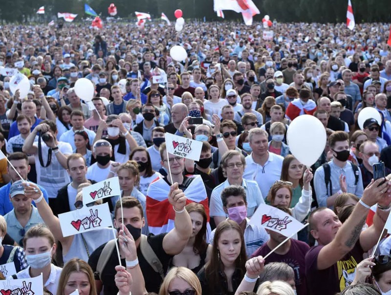 Беларусийн нийслэл Минск хотноо өчигдөр сүүлийн 10 жил болоогүй хамгийн олон хүн оролцсон сөрөг хүчний жагсаал болсон байна. Зохион байгуулагчид нь нийт 63 мянган хүн энэхүү жагсаал цуглаанд оролцсоныг мэдээлж байна. Жагсагчид Ерөнхийлөгчийн сонгуульд нэр дэвшигч Светлана Тихановаг дэмжиж байгаагаа илэрхийлэн жагсжээ.