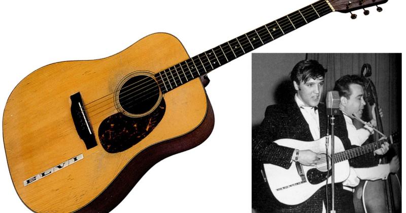 1942 онд үйлдвэрлэгдсэн “Martin D-18 Sun Session” гитарыг Элвис Пресли 1954 онд Мемфисийн нэгэн хөгжмийн дэлгүүрээс худалдаж авч байжээ. Худалдаж авсныхаа дараа хоёр жилийн турш Элвис уг гитараа тоглож “That's All Right(Mama)”, “Blue Moon of Kentucky”,”Good Rockin' Tonight” зэрэг хит дуугаа зохиож, дуулсан аж. Тэрээр гитарандаа бага зэрэг өөрчлөлт хийсэн байдаг бөгөөд төмөр үсгээр өөрийнхөө нэрийг наасан боловч S үсэг нь хожим алга болжээ.