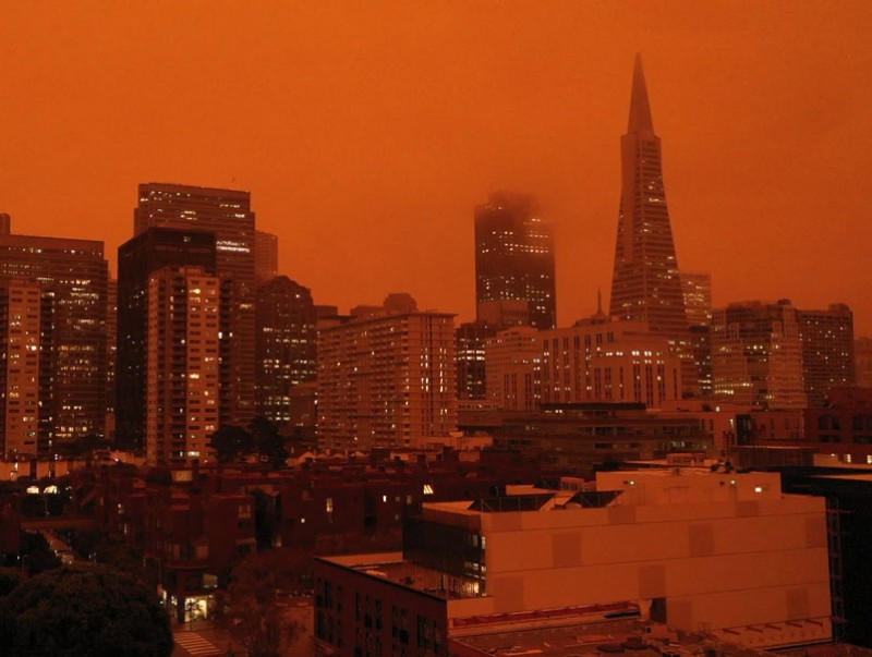 Америкийн Калифорни мужийн Сан-Франциско хот түймрийн улмаас улбар шар өнгөтэй болжээ. АНУ-ын Үндэсний агаар мандал, сансрын орон зай судлалын газраас гаргасан хиймэл дагуулын зургаас харахад түймрийн утаа баруун эргийг бүхэлд нь бүрхсэн байна.