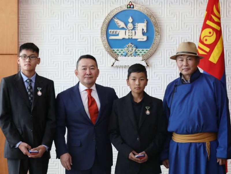 Монгол Улсын Ерөнхийлөгч Халтмаагийн Баттулга зарлиг гаргаж, Өвөрхангай аймгийн Арвайхээр сумын ерөнхий боловсролын Нэгдүгээр сургуулийн сурагч Батсүхийн Гурвансайхан, Батсүхийн Галбадрах нарыг “Шударга журам” медалиар шагналаа.
