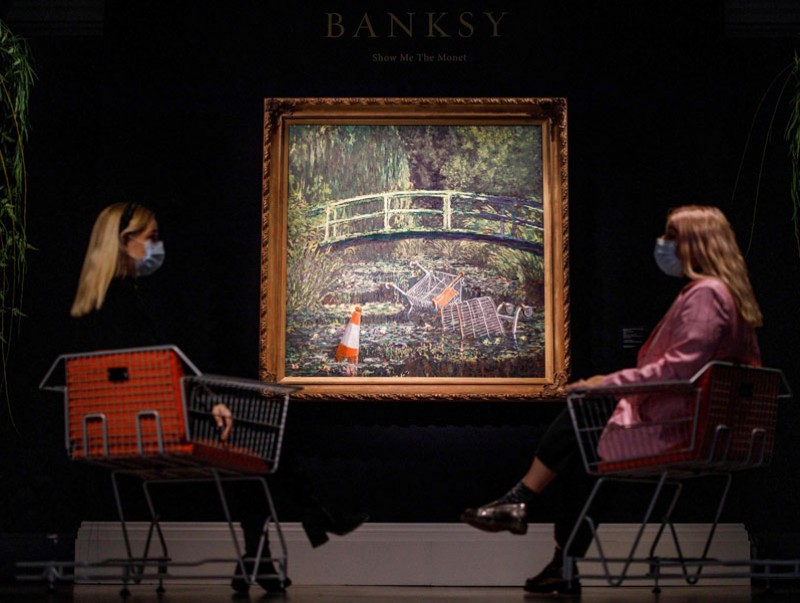 Бэнкси гудамжинд янз бүрийн сэдэвтэй зургийг зурдгаас гадна улс төрийн идэвхтэн, кино найруулагч нэгэн юм. Түүний олонд танигдсан бүтээл болох “Шов Ми д Монет” /Show Me the Monet/ зургийг Лондон хотын Сотбис дуудлага худалдааны компани лхагва гарагт үнэ хаялцуулан худалдсан байна. Шинжээчид энэхүү зургийг 5 сая ам.долларын үнэд хүрэх байхаа гэж тооцоолж байсан юм. Харин тус урлагийн бүтээл таамаглалаас хавьгүй өндөр буюу 9.8 сая ам.доллараар зарагджээ. Худалдан авагч нэрээ олон нийтэд илчлэхээс татгалзжээ.