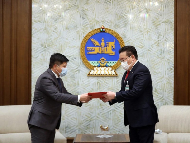 Монгол Улсын Их Хурлын дарга Г.Занданшатарт Зохиогчийн эрхийн тухай хуулийн шинэчилсэн найруулгын, Патентын тухай хуулийн шинэчилсэн найруулгын, Барааны тэмдэг, газар зүйн заалтын тухай хуульд нэмэлт, өөрчлөлт оруулах тухай болон Авлигын эсрэг хуульд өөрчлөлт оруулах тухай хуулийн төслүүд, “Монгол Улсын хууль тогтоомжийг 2024 он хүртэл боловсронгуй болгох үндсэн чиглэл батлах тухай" Улсын Их Хурлын тогтоолын төслийг (2020.12.01) Улсын Их Хурлын гишүүн, Засгийн газрын гишүүн, Хууль зүй, дотоод хэргийн сайд Х.Нямбаатар өргөн мэдүүлэв.