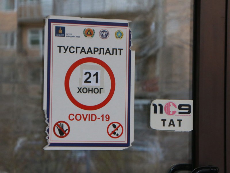 ТУСГААРЛАН АЖИГЛАХ БАЙР: Улсын хэмжээнд тусгаарлан ажиглах 65 байр болон эмнэлэгт нийт 1874 иргэн байна. Тухайлбал, Улаанбаатар хотод 1034, Сэлэнгэ аймагт 297, Дархан-Уул аймагт 269, Архангай аймагт 105 иргэнийг тусгаарлан ажиглалтад авчээ. Мэргэжлийн хяналтын байгууллагаас тусгаарлан ажиглах байрны ариутгал халдваргүйжүүлэлт, эрүүл ахуй, халдвар хамгааллын нөхцөл, дэглэмийн байдалд хяналт тавин ажиллаж байна.