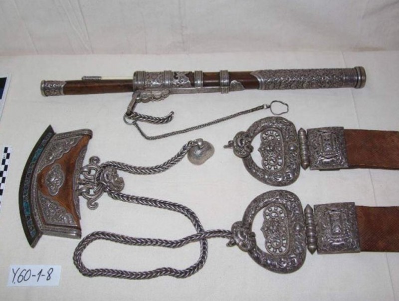 Уг эдлэл нь Монголын Үндэсний музейн сан хөмрөгт хадгалагдаж байгаа бөгөөд хутганы хувьд онцолвол, агар модон хуйны мөнгөн дугтуй дээрээ арван хоёр жил, эвэр угалз хээтэй. Мөн сийлбэр мөнгөн тольттой суман модон бариултай аж.