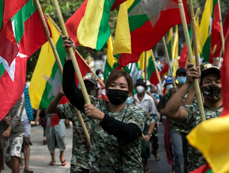 Мьянмарт төрийн эргэлт хийсэн цэргийнхнийг дэмжигчид өргөн хүрээтэй жагсаал цуглаан зохион байгууллаа. Тус улсын томоохон хот болох Янгонд мянга гаруй хүн энэ жагсаалд нэгдэж, цэрэг армийнхны далбааг барьж зэвсэгт хүчний удирдагч, генерал Мин Аун Хлайныг дэмжиж байгаагаа илэрхийлцгээжээ.