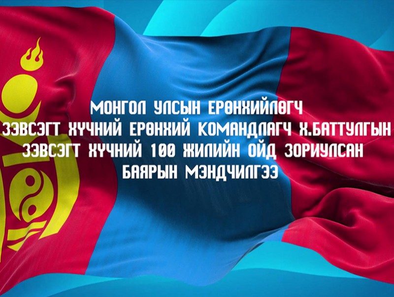 | Монгол Улсын Ерөнхийлөгч зэвсэгт хүчний ерөнхий командлагч Х.Баттулгын зэвсэгт хүчний 100 жилийн ойд зориулсан баярын мэндчилгээ | ||