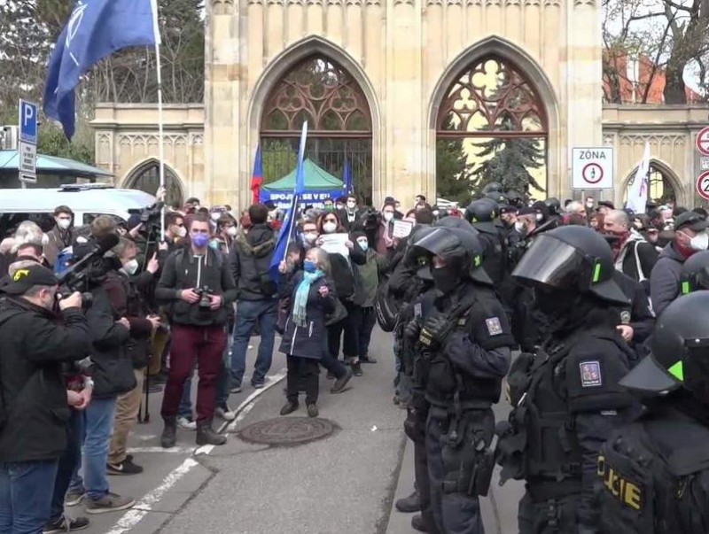 Чехийн эрх баригчид ийм мэдээлэл хийсний дараа өдөр Прага дахь ОХУ-ын Элчин сайдын яамны гадна ОХУ-ыг эсэргүүцэгчид болон хоёр орны найрсаг хөршийн харилцааг хөгжүүлэхийг дэмжигчид зэрэг жагсаал цуглаан хийсэн байна. Энэ үеэр ОХУ-ыг эсэргүүцэгчид болон дэмжигчдийн хооронд мөргөлдөөн гарчээ.