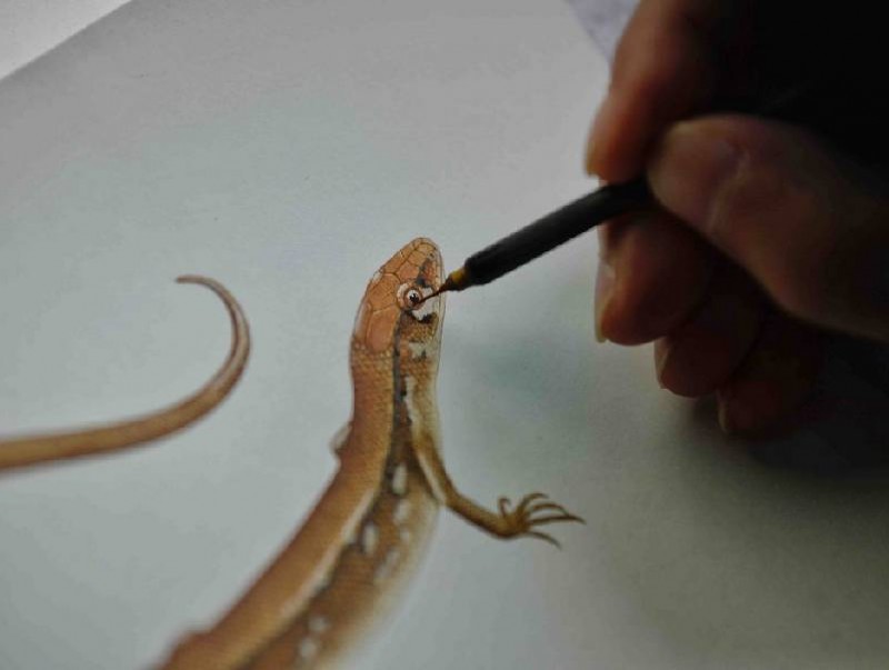 Хятадын шинжлэх ухааны академийн Амьтан судлалын газрын хоёр нутагтан, мөлхөгч судлалын лабораторийн ахлах эрдэмтэн, амьтны зураач Ли Жиянгө 60 настай. Тэрбээр 1978 онд амьтан судлалын газар ажиллаж, 1990 оноос хоёр нутагтан, мөлхөгчийн судалгааны тасагт зураачаар ажиллажээ. Шинжлэх ухааны бүтээлд зориулж судалгааны зориулалтаар амьтан зурах нь уран зургаас тэс өөр. Учир нь амьтны гадаад байдлыг нарийвчлан бодитоор зурах шаардлагатай бөгөөд тухайн амьтны гадаад төрх, биеийн бодит хэлбэр, арьсны судал, хээ, өнгө, онцлогийг яг таг харуулах хэрэгтэй.