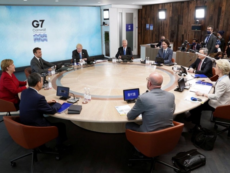 Английн Карбис Бэй хотноо долоогийн бүлгийн дээд хэмжээний уулзалт 2 дахь өдрөө үргэлжлэх гэж байна. Баасан гарагт Их долоогийн бүлгийн орнуудын удирдагчид хүн хоорондын зай баримтлан уламжлалт дурсгалын зургаа татуулж цар тахлын дараах үеийн дэлхий нийтийн сэргэлттэй холбоотой асуудал хөндсөн эхний хуралдаанаа хийлээ.
