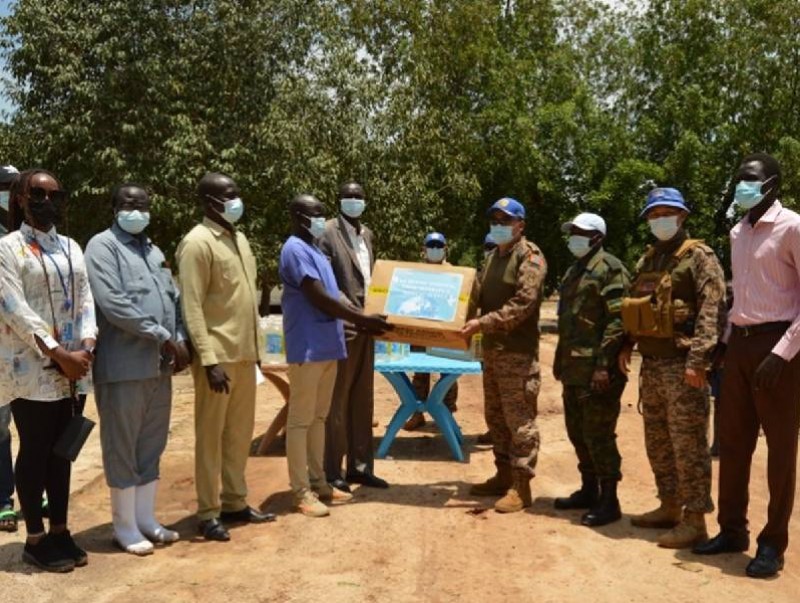 Бүгд Найрамдах Өмнөд Судан Улсад явагдаж буй Нэгдсэн Үндэстний байгууллагын мандаттай “UNMISS” энхийг дэмжих ажиллагаанд үүрэг гүйцэтгэж буй Монгол Улсын Зэвсэгт хүчний 10 дугаар ээлжийн цэргийн багийн Ахлагчийн зөвлөлөөс ажиллагааны газар оронд иргэн-цэргийн харилцааг бэхжүүлэх, хариуцлагын бүсэд “Ковид-19” цар тахлаас урьдчилан сэргийлэх арга хэмжээг өргөжүүлэн сурталчлах зорилгоор “Юнити” секторын Бентью суурины төв эмнэлэгт 100 литр гар ариутгагч, 6000 ширхэг амны хаалтыг хандивлалаа.