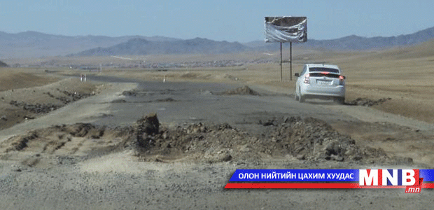 Улаанбаатар-Зуунмод-Мандалговь чиглэлийн хатуу хучилттай авто замын зорчих хэсгийн нийт уртад их хэмжээний нүх гарсан, торон хагарал, бамбалзуур үүсч, суултанд орж тээврийн хэрэгсэл осол аюулгүй зорчих нөхцөл алдагдаж байгаа нь шалгалтаар тогтоогджээ.