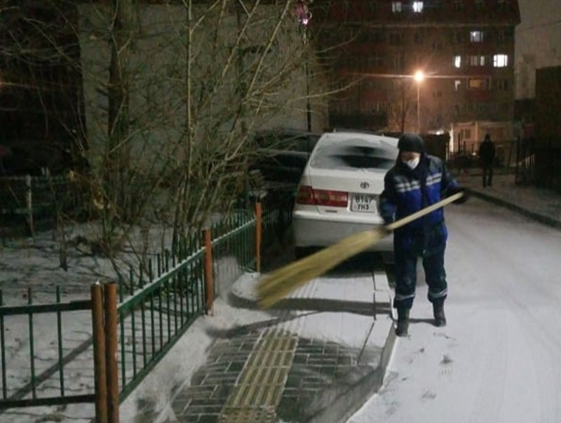 Өнөө өглөөний 06:00 цагаас эхлэн цас орж, нийслэл хотын гудамж талбай, зам харгуйд цасан бүрхүүл тогтсон тул Хот тохижилтын газар болон дүүргүүдийн ТҮК, хувийн хэвшлийн 21 ТҮК-ийн зам талбайн үйлчлэгч нар ажилдаа эртлэн гараад байна. Өнөөдөр зам талбайн 816 үйлчлэгч тусгай зориулалтын 68 машин техниктэй ажиллаж, 08:00 цагийн байдлаар халтиргаа гулгаа арилгах зориулалтын 63 тонн бодис, 64 тонн давсыг зам, талбайд цацаад буй аж.