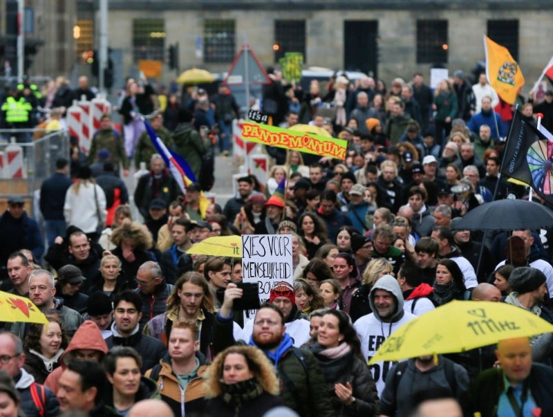 Хэдэн мянган жагсагчид, тэр дундаа Европын бусад орнуудын зарим нь тус улсын эрүүл мэндийн үнэмлэх болон тахлын бусад хязгаарлалтыг эсэргүүцэж байгаа юм. Эсэргүүцлийн жагсаалд оролцогчид ерөнхий сайд Александр Де Кроог болон засгийн газрын арга хэмжээг шүүмжилсэн уриа лоозон барьжээ.