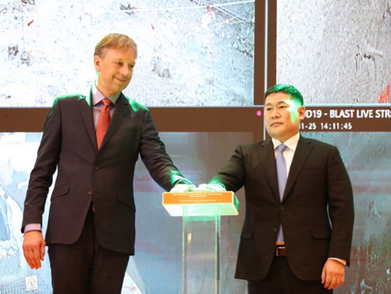Оюу толгойн гүний уурхайн үйлдвэрлэлийн эхний шат буюу анхны тэсэлгээ хийх командыг Монгол Улсын Ерөнхий сайд Л.Оюун-Эрдэнэ, Рио Тинто группийн гүйцэтгэх захирал Якоб Стаусхольм нар өглөө.
